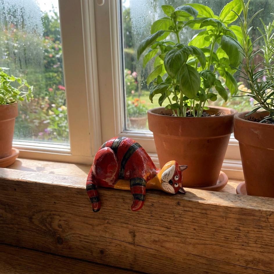 Meet The Lazy Cat, the perfect blend of charm and modern design! This adorable feline loves to lounge effortlessly on the edge of your shelf, mantel, or window sill, with its leg and tail playfully dangling over the side. A true statement piece that brings character and relaxation to any space.