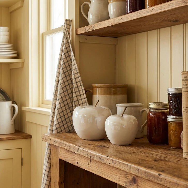 Perfectly Sized Pair – Two apples in 9x9x11cm & 11x11x14cm for versatile display.